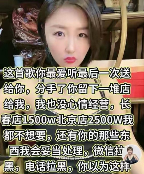 4个月前,她和富豪男友分手,男友留下了一堆店给她,长春店有1500万,北京店有2500万,但是她都不想要。