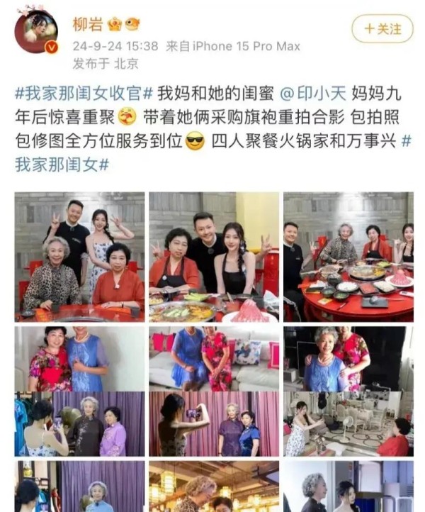 柳岩与印小天及母亲合影,火锅聚餐欢乐无限!