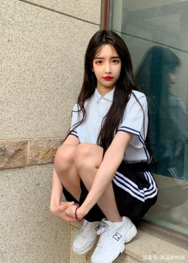 一般来说,黑白衬衫和短裤都是学校风格。艾比还控制着下半身的一条黑色短裤条纹设计,看起来很时尚。这些鞋子,包括脚上的鞋子,也是普通的。一双厚底的新百伦休闲鞋,不仅展现休闲风格,更在视觉上拉长了双腿的比例。