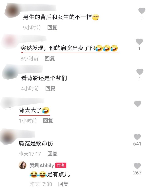 从视频中可以看到,艾比转身之后的背影和肩宽都非常的违和,不像是女生的背影,更像是披了一头长发的男生,也正是这个特征让艾比遭到了水友的吐槽:肩宽始终还是硬伤,这肩宽一看就知道是男生。而且艾比居然也毫不避讳,直接回复到:确实有点。
