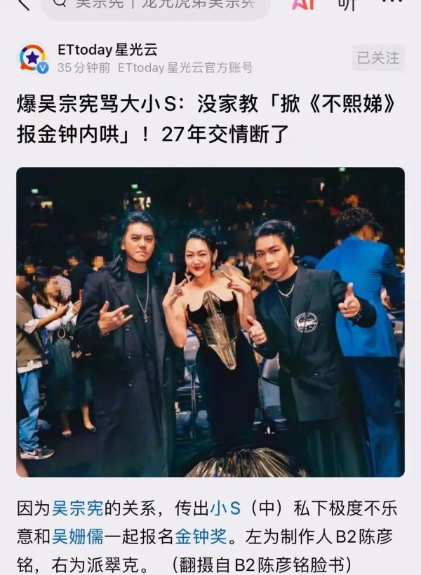吴宗宪爆料严责大小S,曾疑女儿受阻为小S作祟,个人回应引关注