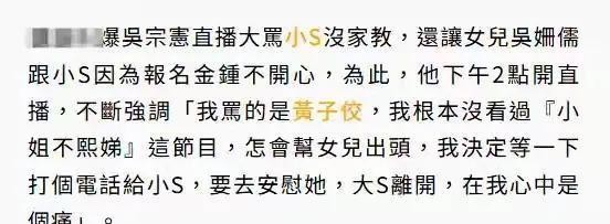 关于大小S没有家教这事,吴宗宪之前用了张冠李戴、断章取义的方式回应,觉得别人没有搞清楚他的话的前因后果,理解得也不完整。