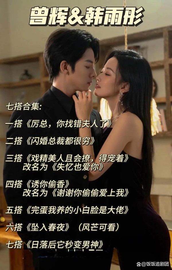 目前曾辉韩雨彤已经七搭,粉丝更是亲切的称他们为“落日雨辉”CP。