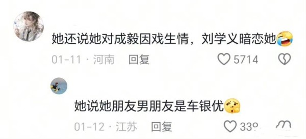 粉丝现在还记得,她说过很多,比如对成毅因戏生情,还表示刘学义暗恋自己,更是说自己的男朋也是车银优,如今又说对陈晓一见钟情,说实在的,大半个娱乐圈几乎都跟她传过绯闻,甚至还涉及到了韩国娱乐圈,真的好抓马啊,能有底气说出这些事情,也是一个人才,感觉这背后的编剧不会是从张大大那边被打离职的吧。