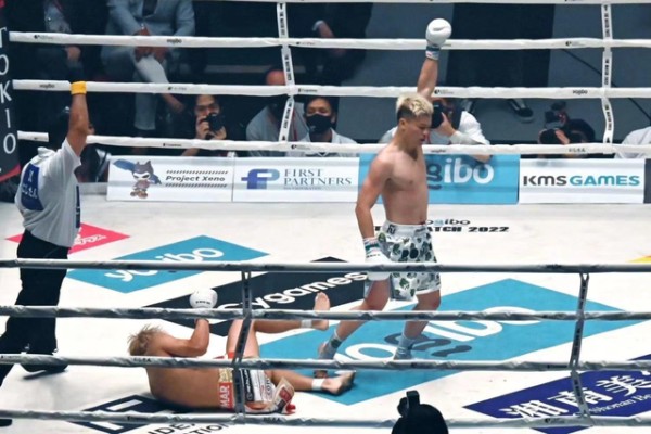 从双方选手入场开始,就能看得出来武尊给自己背负了更大的压力。他在首回合也非常谨慎且慢热,连续被那须川天心的拳法击中,并被后手拳命中下巴击倒一次。