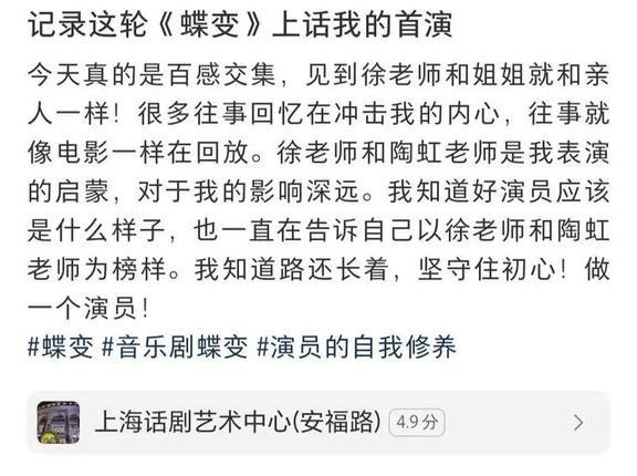 那天,舞台剧的刘泽星在网上发了条动态,说跟徐峥和陶虹重聚的心情像见到家人一样,脑子里老片段像放录像似的重重播。