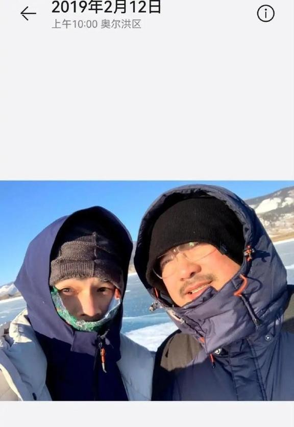 还有2019年2月12号,徐峥在《囧妈》拍摄现场跟我一起拍了一张照,那天冻得跟冰箱里似的,俩人裹得跟粽子似的,但笑得像暖和的春天一样!