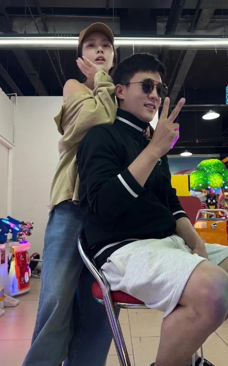 在夫妻合照中,王灿戴着棒球帽,将头发扎成马尾辫。她身穿米色背心和浅色外套,妆容清纯淡雅,给人一种十七八岁的小姑娘的感觉。此外,她的面容还有些类似宋慧乔,清爽的外貌令人感到舒适。