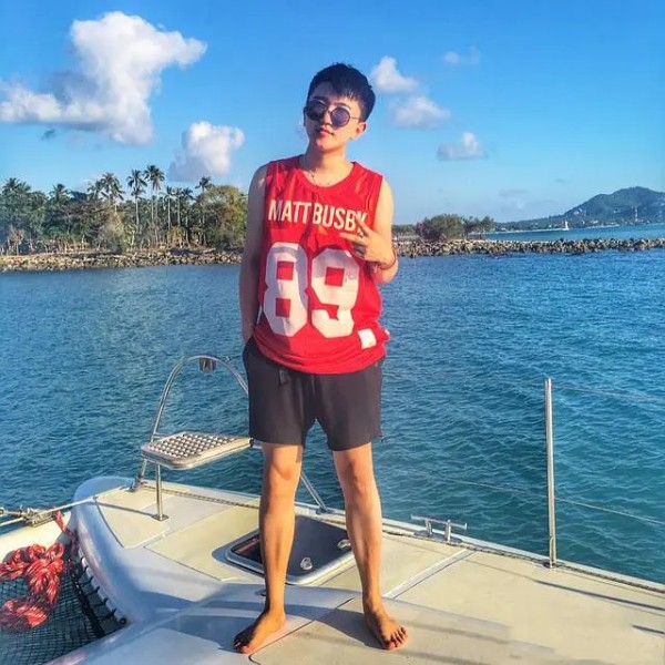 这身相比于上面三身就简单多了,字母背心搭配黑色短裤,运动又休闲,舒适又自在,非常阳光大男孩,很适合出去度假的时候穿。