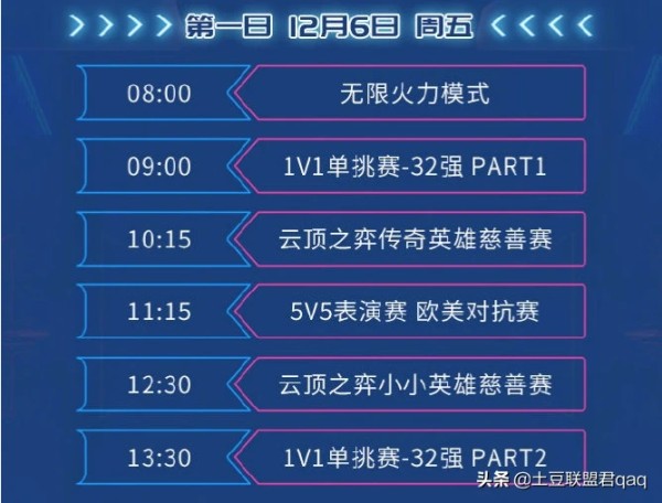 根据昨日更新的全明星赛程,上半区和下半区的比赛将分别在12月6日9:00和13:30开始。 本次全明星赛首日共有六项不同的比赛项目,其中包括我们所熟悉的云顶之奕与无限火力抗,可以说对本次全明星拳头所做的改动还是很大的,增加了很多娱乐性强的赛程。届时的比赛相信也会非常精彩,尤其是今年“solo王”的争夺会异常激烈。欢迎各位lol粉丝为自己喜爱的选手加油打call!#英雄联盟# #LOL全明星赛#