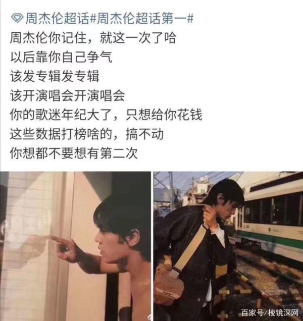 写者或许无心,但是看者有意。周杰伦是很多80后和90后的青春记忆,一些周杰伦的粉丝随后开始号召学习饭圈(即粉丝圈子)做数据,应援偶像。