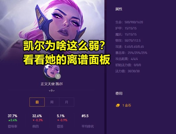然而《云顶之弈》S8有这么一个神奇的弈子,因为强度太弱,英雄专属强化符文都无力回天。同时,她还有和【幻灵战队】羁绊一样鸡肋的技能施法时间。这个弈子就是1费卡【凯尔】。