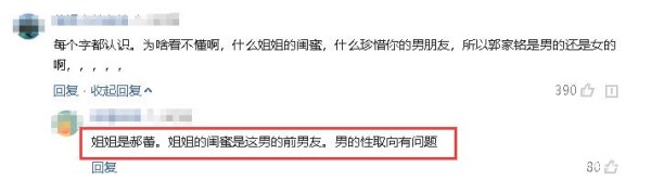 当然,也有人不太懂郝蕾工作室的回应,可很快就有明白的网友做出了解释,男方的性取向有问题,所以通过前男友结识了郝蕾(他的前男友就是郝蕾闺蜜)。