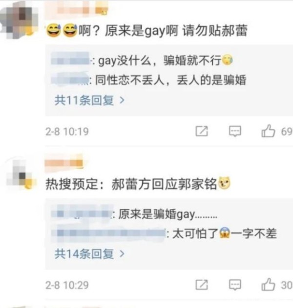 另一个爆炸点就是郭家铭的性取向了,发文中有一句:“我们就不提你的前男友以及前前男友了”,这是什么意思?一句这样的话让网友们瞬间炸了锅,纷纷在下面留言。