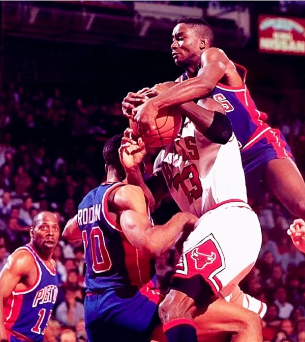 在80年代后期,NBA的霸主波士顿凯尔特人队逐渐走下坡路,这时东部迎来了活塞与芝加哥的确“二人转“格局年轻的公牛跃多次尝试挑战老辣的活塞,均败下阵来。连续多年的季后赛相碰,双方的防守强度大到难以想象,各种恶犯层出不穷,皮蓬皮蓬身上的大疤伤痕,就是大虫罗德曼的恶犯所作所为,即便多年后他们成为了队友,他们也极少交流。