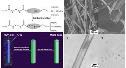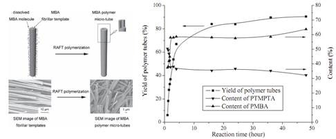 基于RAFT聚合技术,将单体组装纤维直接转化为聚合物微米管(Macromolecular Rapid Communications, 2013, 34, 185−189),并制备了表面具有纳米线网络的聚合物微米管(Journal of Polymer Science, Part A: Polymer Chemistry, 2014, 52, 1862–1868)和含氟聚合物微米管(Chemistry – An Asian Journal, DOI: 10.1002/asia.201500035)。