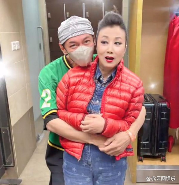 在后台见到汪明荃时,他显得很是激动,在后面熊抱对方,表现亲密。
