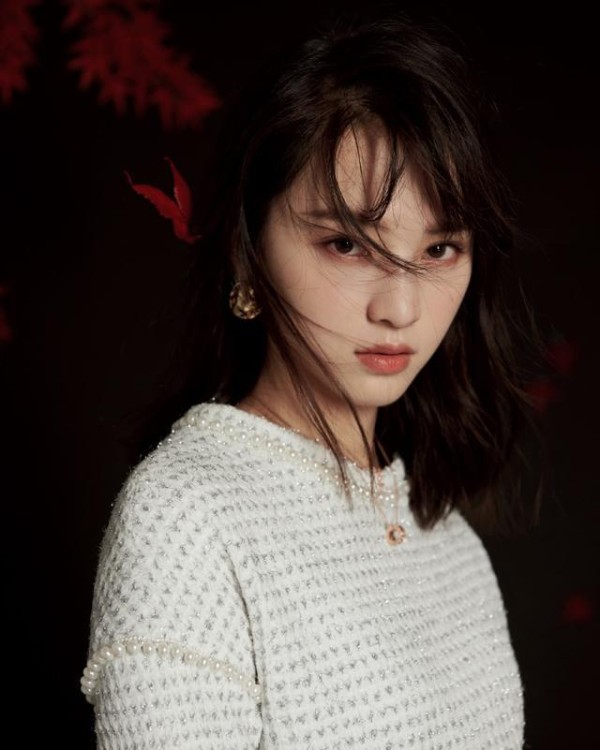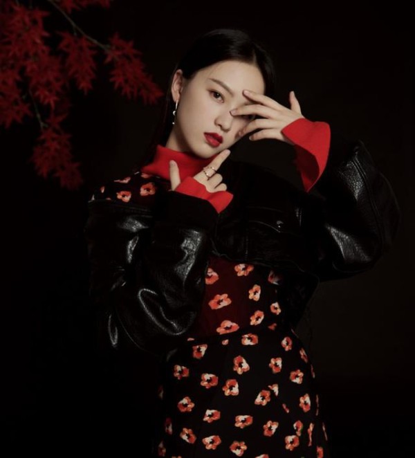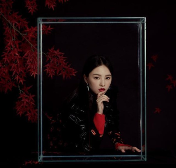 这个妆容真的还挺不适合的,因为本身背景就是黑色的,即使有大红色的枫叶装饰也会显得整体很黯淡,而黄灿灿的造型和妆容给人的感觉是很成熟摩登的,但是显然她没有很好的驾驭起来,所以整体会觉得不是那么的好看。