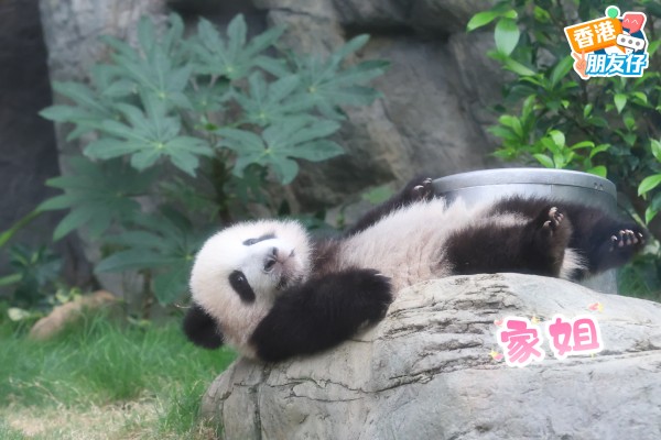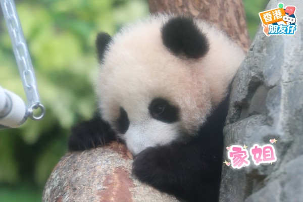 “家姐” 和“细佬” 是两只港产大熊猫的乳名,如今模样相当一致,不愧是双胞胎✨,背上有紫色記號的就是“细佬”喔。两个小宝宝对一切都充满好奇,时不时还来个可爱的翻滚,模样别提多招人喜欢。它们憨态可掬的一举一动,都引得现场的大熊猫粉丝阵阵欢呼。