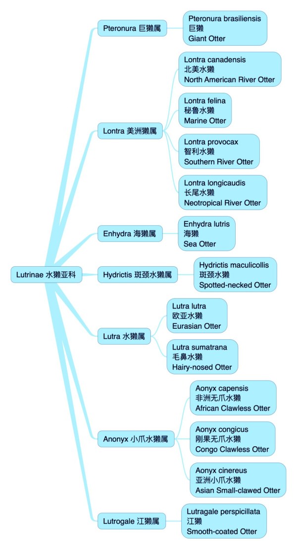 水獭亚科包括多种类,不仅限于淡水中的种类,还有如海獭这样的海洋种类。不同种类水獭在体型、习性上各不相同。除了水獭外,还有诸如旱獭等其他动物也带有“獭”的称呼,但这些动物将在其他文章中介绍。接下来,我们将一起走进水獭亚科的世界,深入了解其各个属和种。