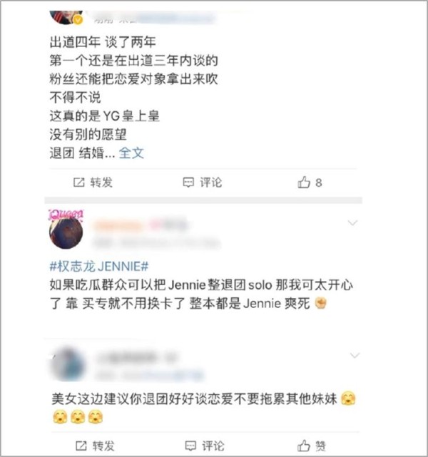 Jennie与权志龙恋情,被网友指退出BLACKPINK,不要再拖累成员
