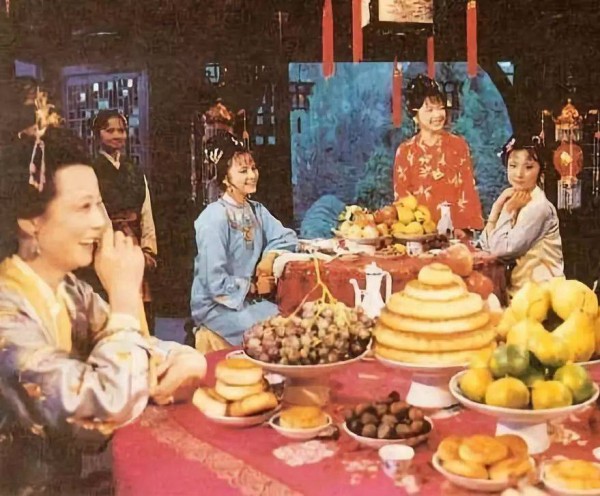 另外,《红楼梦》里还写到了中秋节的家宴。贾府的家宴设在凸碧堂内,能到的家里人都到了,而且“桌椅形式皆是圆的。特取团圆之意。”贾母还“命折一枝桂花来,命一媳妇在屏后击鼓传花。花在手中,饮酒一杯,罚说笑话一个”,十分热闹。