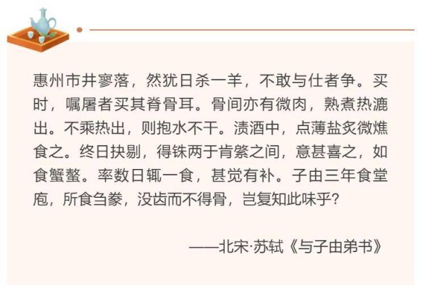 对政敌更是不留情面,被贬惠州时,研发羊骨头做法,写信给弟弟苏辙,还不忘阴阳怪气一番。