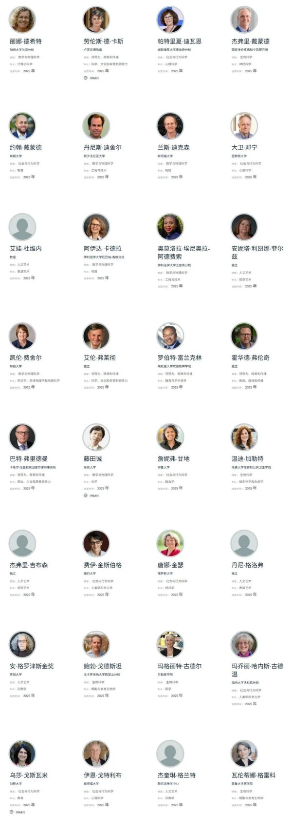 美国艺术与科学院院士制度介绍及2025 年新当选院士名单完整版!