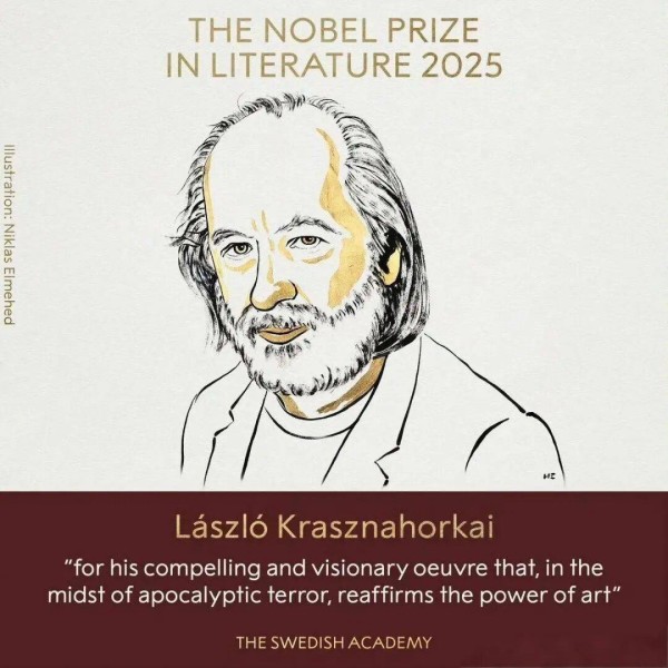 北京时间10月9日晚,2025年诺贝尔文学奖正式授予匈牙利作家克拉斯诺霍尔卡伊·拉斯洛(László Krasznahorkai)。