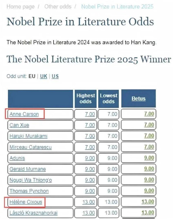 2025诺贝尔文学奖揭晓!但今年赔率榜上这位“女性书写”先驱,同样值得瞩目