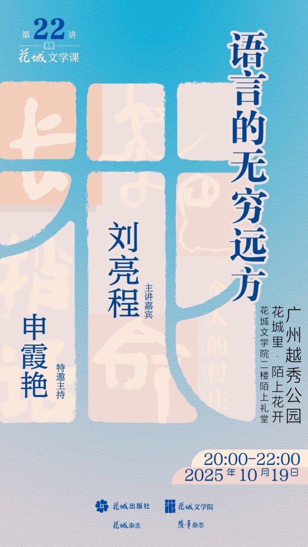 此次在花城文学院的讲座《语言的无穷远方》中,刘亮程将回望自己的写作之路,分享他与语言相遇、角力,并一同抵达“无穷远方”的旅程。