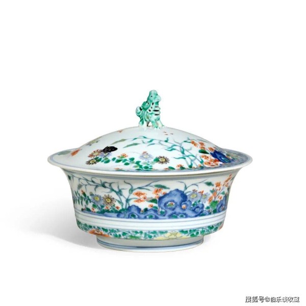清雍正 斗彩花蝶纹天鸡钮合盌