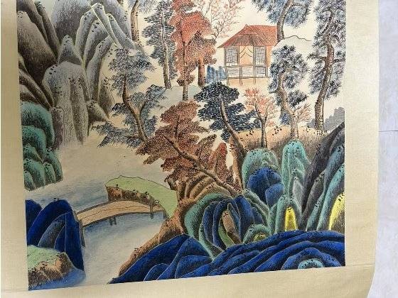 3. 意境营造:虽用重彩,却通过云雾留白、溪桥屋舍的点缀,营造出“林泉高致”的文人山水意境,实现了“富丽色彩”与“淡远诗意”的平衡。