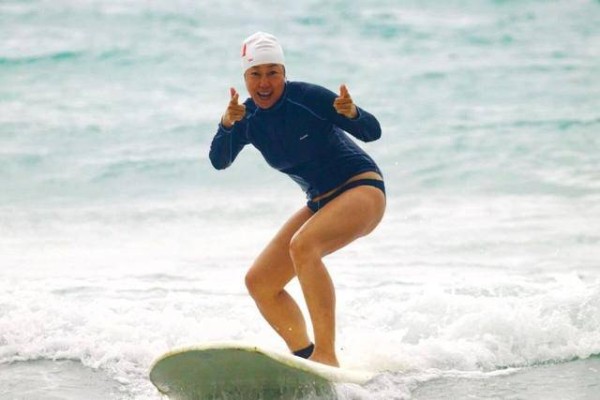 潜水达人、56岁的辉姐实现了之前的冲浪梦想。