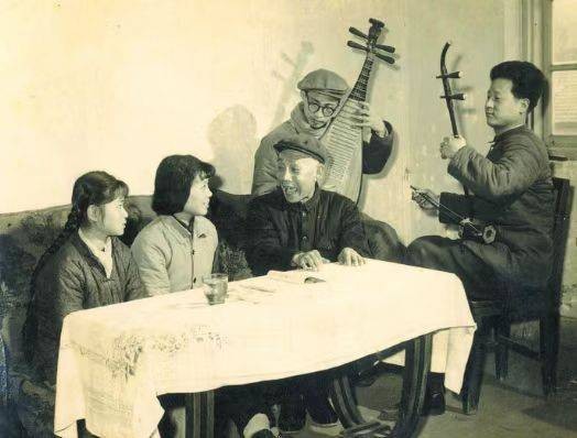 1960年黄梅戏老艺人丁永泉在安徽省黄梅戏剧团教授青年演员。微信公众号“安徽档案”图