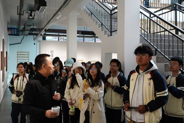 本次调研路线暗藏巧思,串联起空·美术馆、礼遇吉林·吉林省文旅商品体验馆、向北书店三大文化地标,打造“边走边学”的实践课堂。在空·美术馆,“翰墨流芳越世吉光”书画展成为新生们的“第一课”。清末至近现代的120余件名家作品,涵盖吴大澂、李叔同、傅抱石等与吉林渊源深厚的大家手笔,清晰勾勒出吉林地域书画艺术的百年脉络。新生们穿梭在现代展厅与木质展陈间,凝视《野亭消夏图》的雄浑篆意、《书法五言联》的禅意笔墨,在艺术与历史的碰撞中,读懂文化传承的温度。
