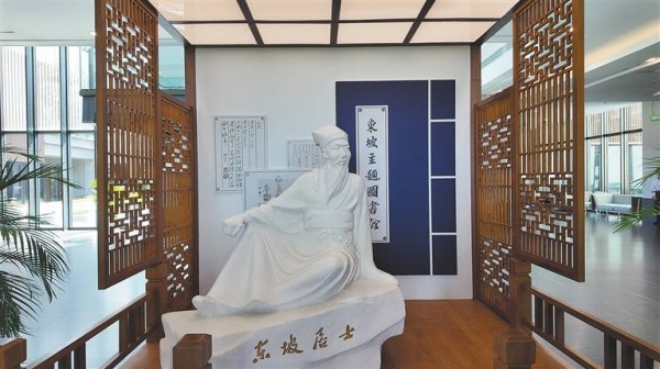 海南东坡主题图书馆内的东坡雕塑。海南日报全媒体记者 王晖琛 摄