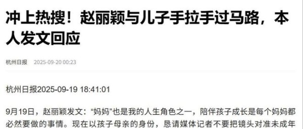 一个月前,她牵着儿子的手过马路,还被记者拍下来,她觉得儿子不是“圈内人”,又是个孩子,不应该暴露在网络上,当时还呼吁记者不要拍到孩子的脸。