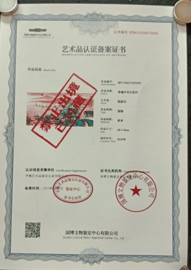 《幸福中华太阳升》是陆染石的代表作之一,该作品已被加盖禁止出境印章。陆染石擅长将中国传统水墨与西方水彩画技法有机结合,其作品多以江南水乡为主题,清新秀雅,富有诗意。《幸福中华太阳升》也体现了他对传统与创新的融合,通过独特的构图、笔墨和色彩,表达了对幸福中华的赞美之情。