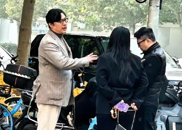 10月26日,有网友就在社交平台中分享偶遇李湘和王岳伦的画面,两人现身北京街头,与一友人在街边闲聊。