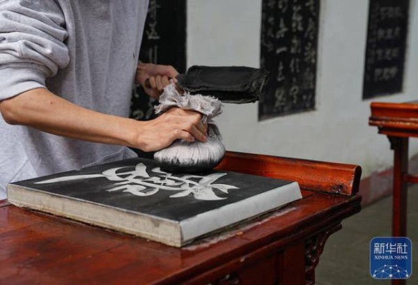 ↑ 10月27日,游客在重庆奉节白帝城景区体验拓片技艺。新华社记者 周佳谊 摄