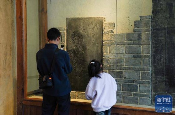 ↑ 10月27日,人们在重庆奉节白帝城景区参观碑刻。新华社记者 周佳谊 摄