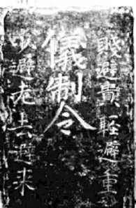 跸,又写作,《说文·走部》:“,止行也。”晋人崔豹《古今注·舆服》说:“警跸,所以戒行徒也。《周礼》跸而不警,秦制出警入跸。”而从《史记·梁孝王世家》看,却是“出言跸,入言警。”总之,都是通过断绝道路,限制民间交通活动,体现出专制帝王对交通设施的专有权和独占权。《宋史·孔承恭传》记载,宋代淳熙年间,规定了“贱避贵,少避长,轻避重,去避来”的法律制度,命令京邑及诸州在要害地方设木牌刻其字,违反者以犯罪论处。在陕西略阳灵岩寺等地依然可以看到石刻遗存。这里的石壁上镌刻了被视作早期交通法规的《仪制令》——“贱避贵”正是《仪制令》的第一原则。