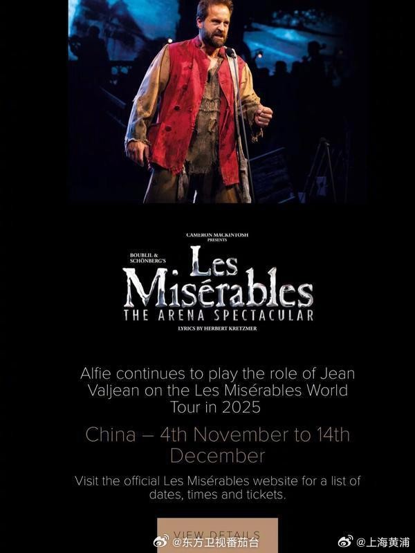 【阿飞:要在中国呆6周明年还来!】音乐剧《悲惨世界》的演员Alfie(昵称阿飞)在采访中表示:只在中国呆6周,明年2月还会回中国巡演。目前已在个人网页中透露,将于2025.11.4-12.14期间饰演冉阿让。一起来看看备受期待的演员演唱片段吧~(资料/小红书网友@番茄土豆SIMPLYTHEBEST B站网友@澹台紫凝)@上海黄浦 @乐游上海@演艺大世界@上海大剧院@SMGLIVE