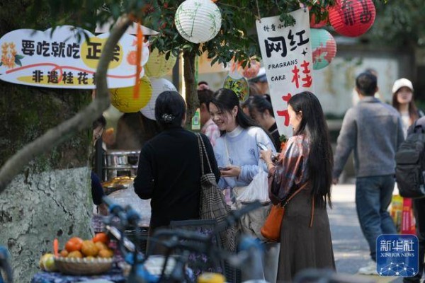 ↑ 10月29日,人们在杭州满觉陇购买桂花糕。
