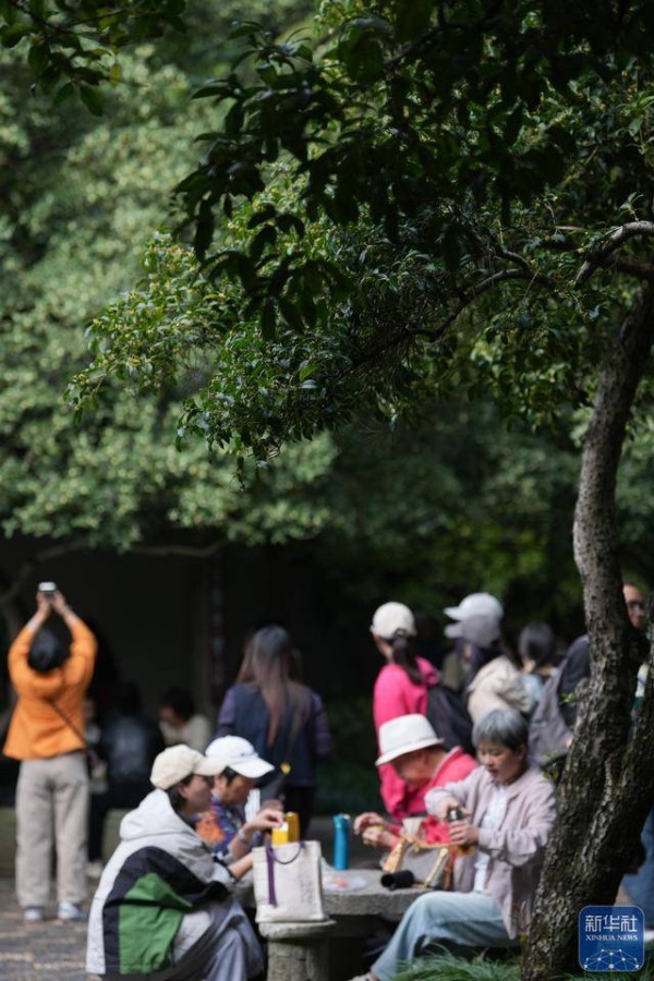 金秋时节,浙江杭州的桂花进入盛开期,比往年略晚,满城桂香。桂花是杭州市花,据杭州市园林文物局统计,杭州全城分布有500余万株桂花树。