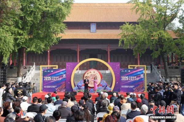 11月1日,2025中国电影表演艺术周开幕式在江苏省南京朝天宫举行,田华、陈宝国、唐国强、张光北、张丰毅、朱亚文等百余位电影艺术家齐聚一堂,展望新时代电影艺术的未来。据悉,今年电影周的活动主题为:“电影·表演·人民”。图为田华(右三)宣布2025中国电影表演艺术周开幕。中新社记者 泱波 摄