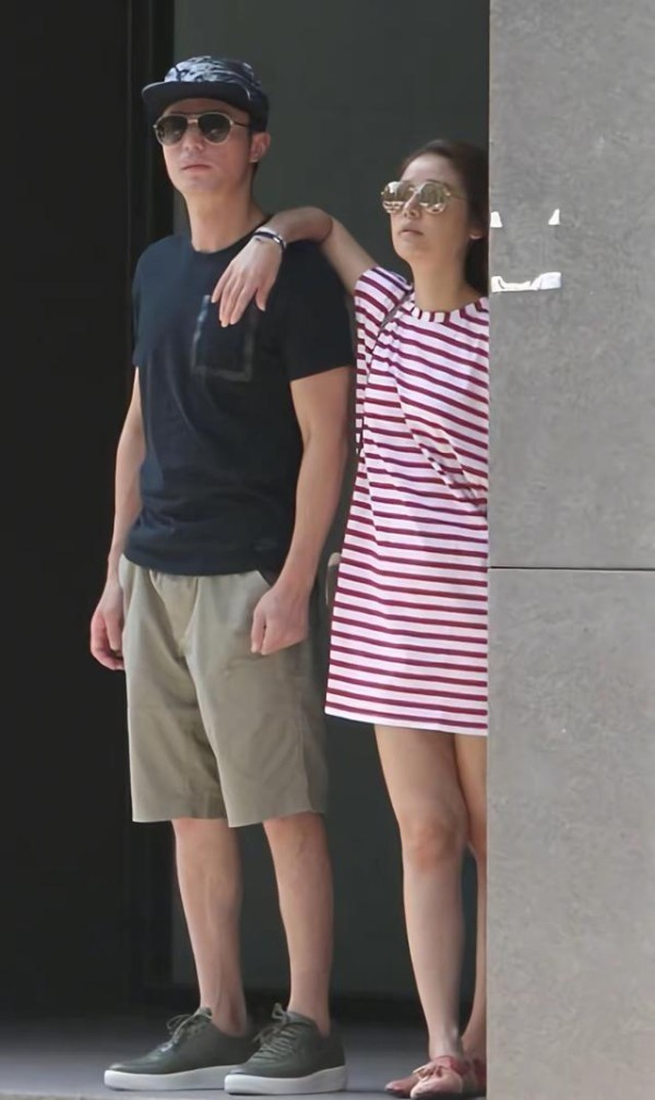 林心如一家三口手牵手出门,霍建华和女儿同吃一杯冰淇淋