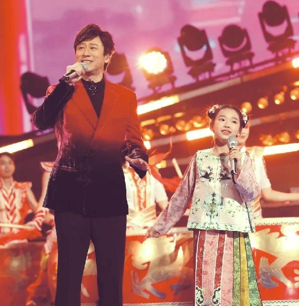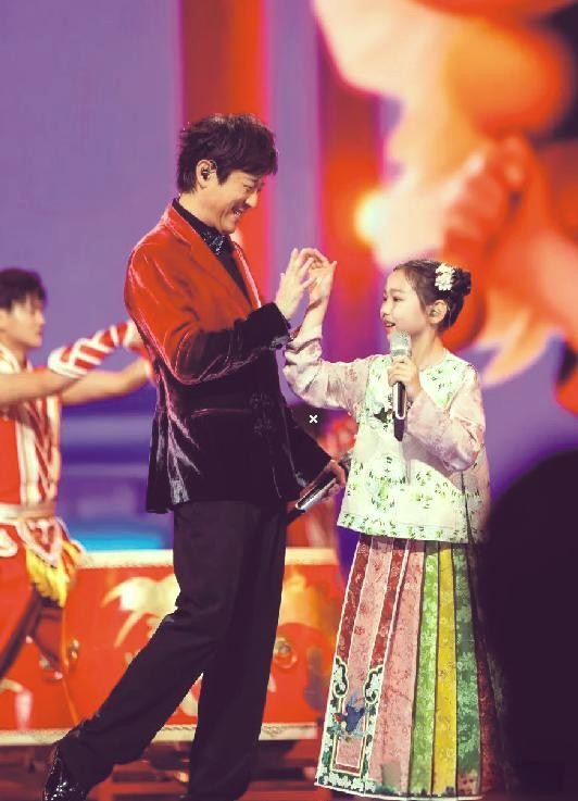 在晚会的初始阶段,小酒窝与佟丽娅的儿子朵朵共同演唱了《月曲》,这一表演迅速成为当晚的开场大戏。两人在演唱间隙展现出的自然与温馨,尤其是小酒窝为朵朵细心整理头发的瞬间,被众多网友誉为“青梅竹马”的典范。