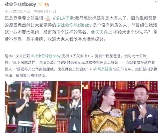 球球的星二代身份和父亲的支持使她在事业起点上拥有了双重优势,然而却也隐藏了潜在的问题。在父亲的熏陶下,球球自幼便对娱乐圈怀有浓厚兴趣。赵本山也慷慨出资,支持女儿投身于电视和电影的拍摄,然而这些尝试并未激起太大波澜。然而,在网红领域,球球却意外走红。
